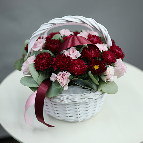 Композиция в корзине "Лидия" из астр, эустом и эвкалипта