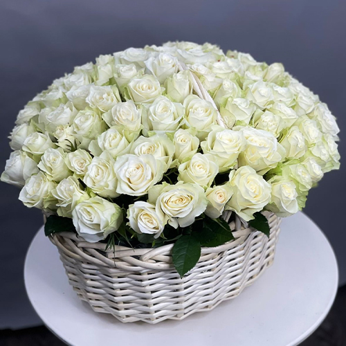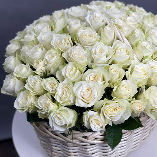 101 белая роза в корзине (40 см)