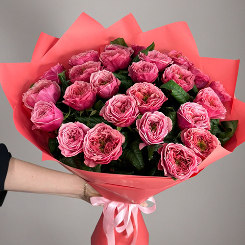 Букет из 25 махровых пионовидных роз Риджентс парк (70 см)